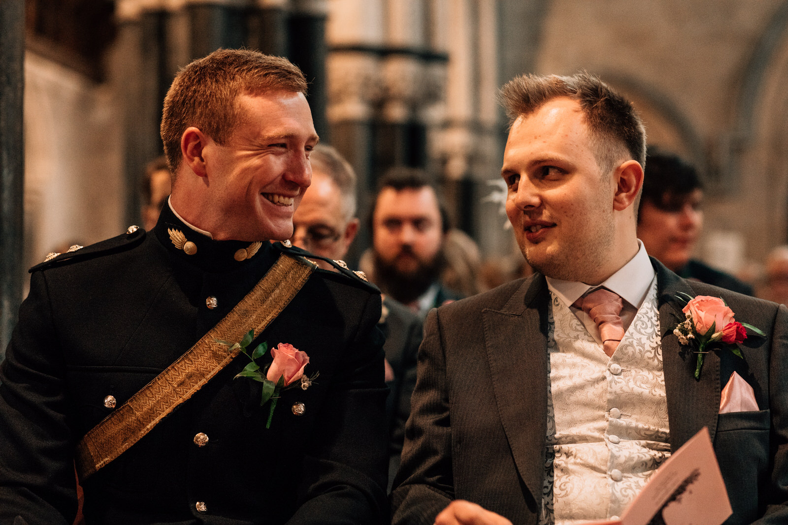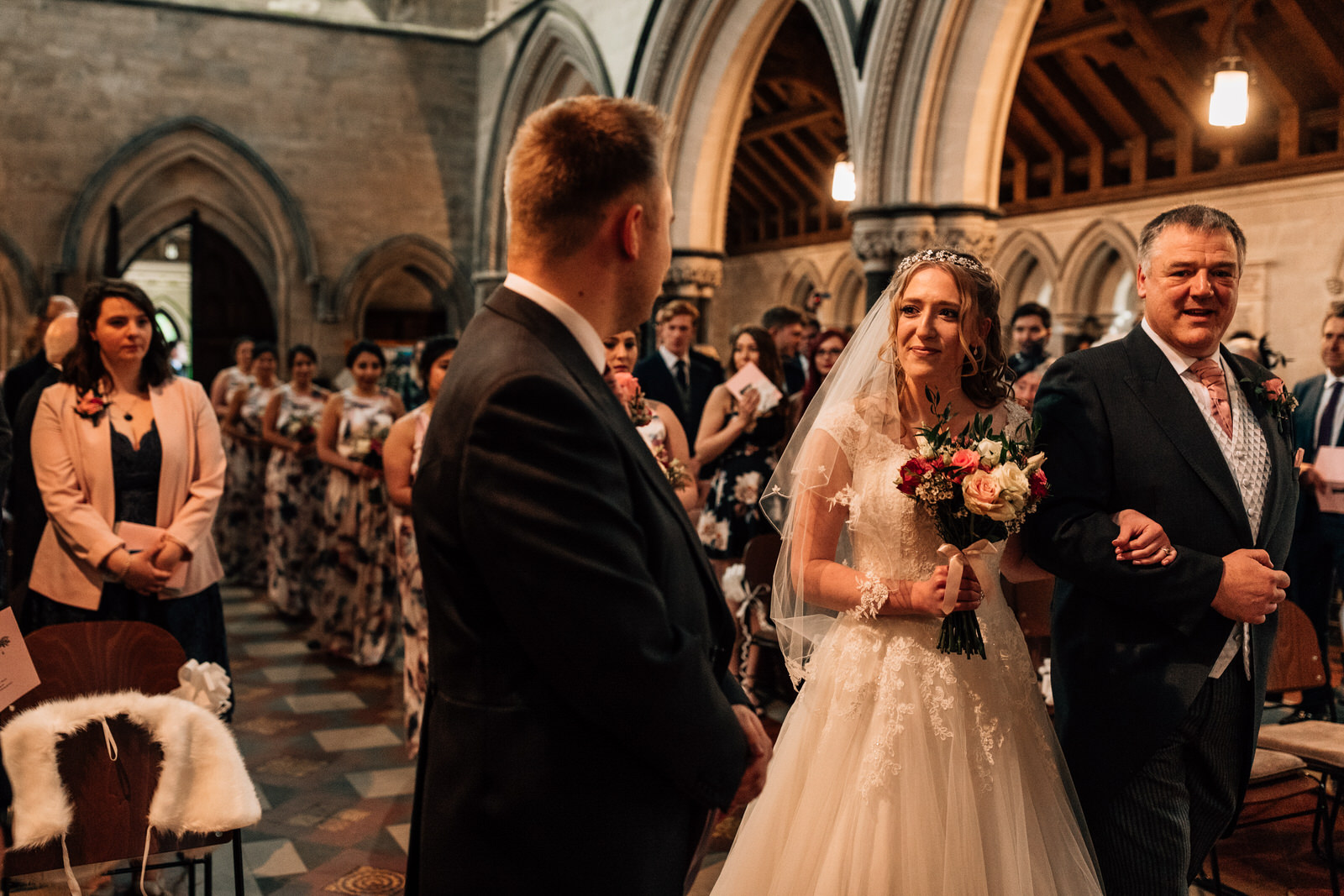 Sarah and Gareth wanted a documentary style to their wedding photography, starting with both the getting ready shots, right the way through to the boogying in the evening. The ceremony was held in the nearby church, offering a striking place to capture a few formal portraits before heading five minutes down the road to the Kingston County Courtyard.