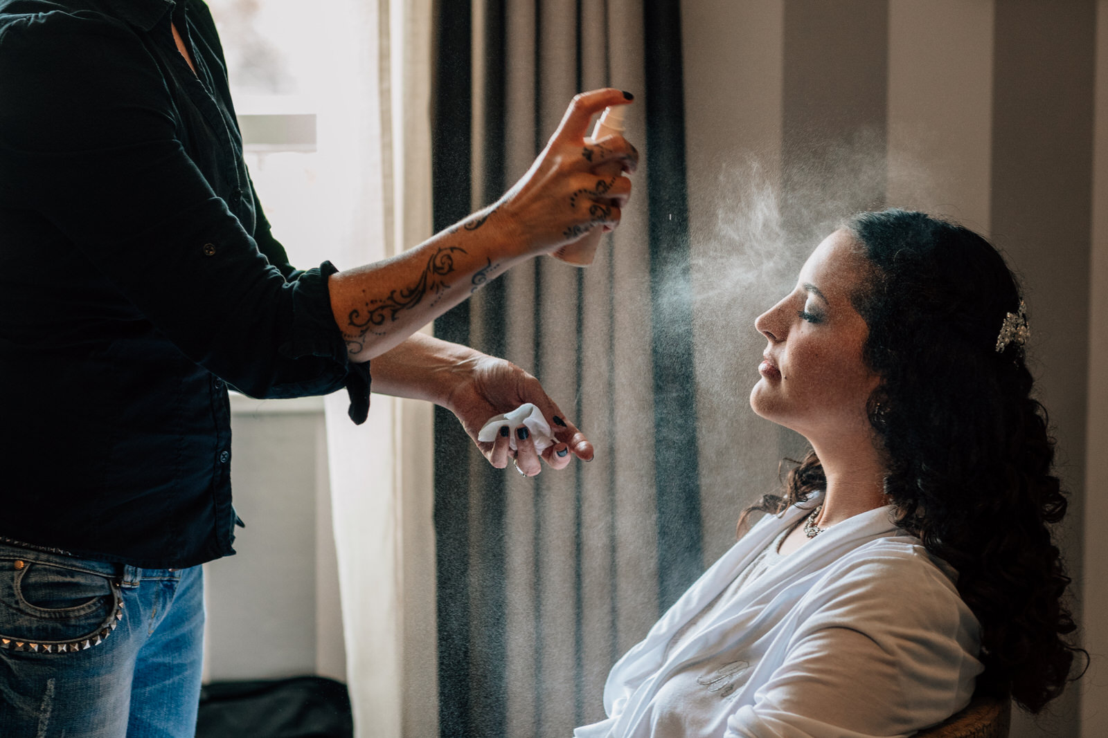 [W]hen I arrived at the stunning Richmond Hill Hotel, David and his ushers were working feverishly on finishing the reception room, looping fairy lights around pillars and hanging hand made bunting to make the reception room extra special. Tat was getting ready in the hotel room upstairs, periodically looking out the window at the weather that just didn’t want to play nicely.